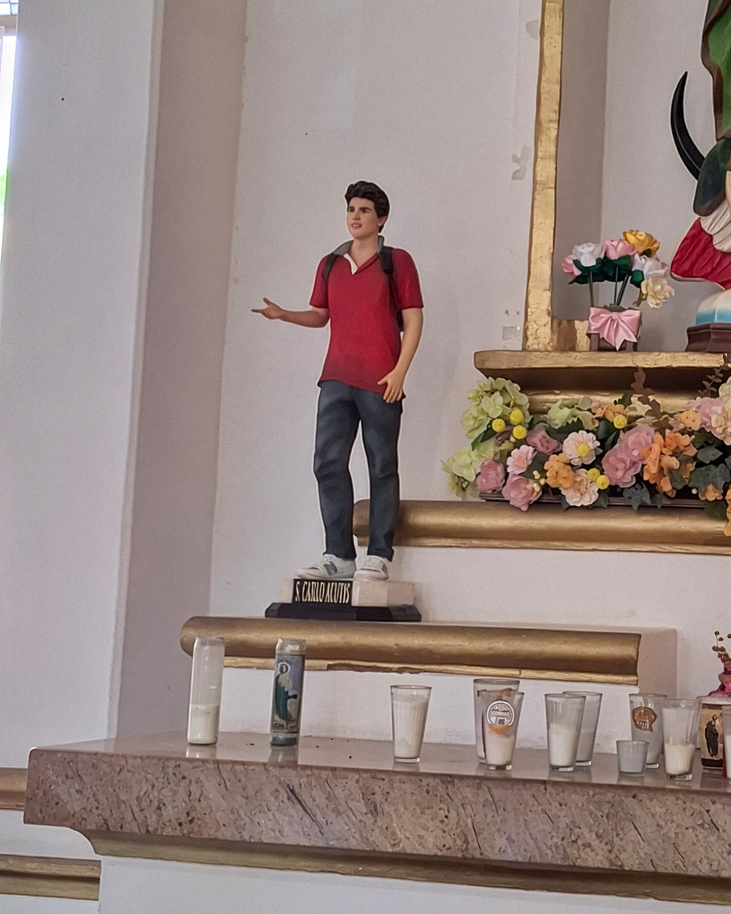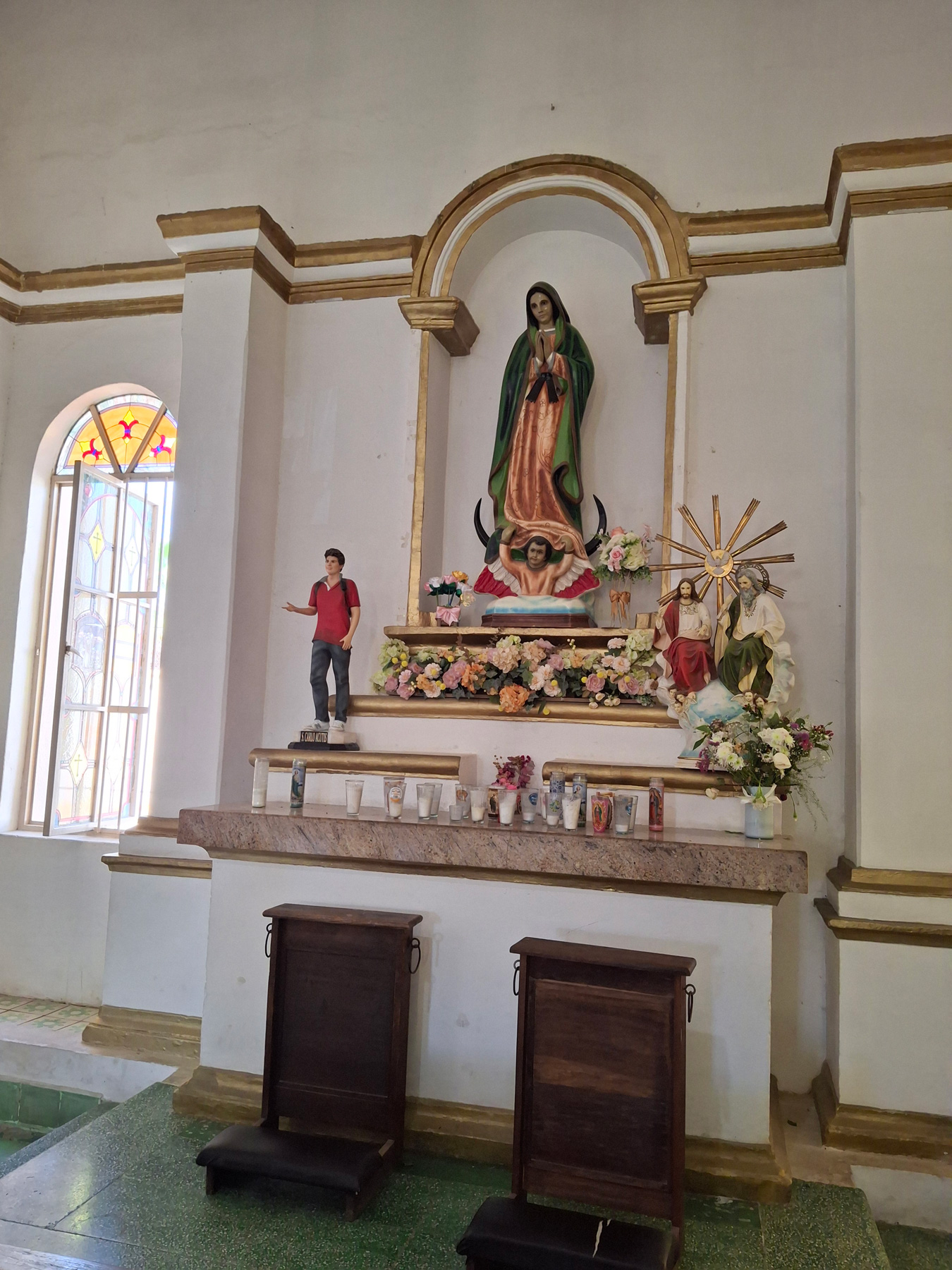 The town square proved to be far more interesting than we thought, even though it’s still decked out in Christmas decorations. Featured near the center is an old church, Mision San José del Cabo, with a polo-shirt-and-jeans-clad statue of Saint Carlos Acutis, the first “Millenial Saint”. We also visit several shops, which showcase some beautiful Mexican artisans. We’re also on the hunt for sunscreen, as well as some Airborne, just as a precautionary measure since we’d both been so intensely at work the last week before. We visit several phamacia (which we discover can mean a shop for just about anything, not just medicinals), and while the sunscreen was an easy find, the Airborne not so much. None of the pharmacists had heard of it, despite several attempts with Google Translate and much odd miming. The best we could find was [at least what we think was] Vitamin C tablets. Then it’s back to the resort to sit around one of the pools sipping down some cervezas, and waiting for the bus.