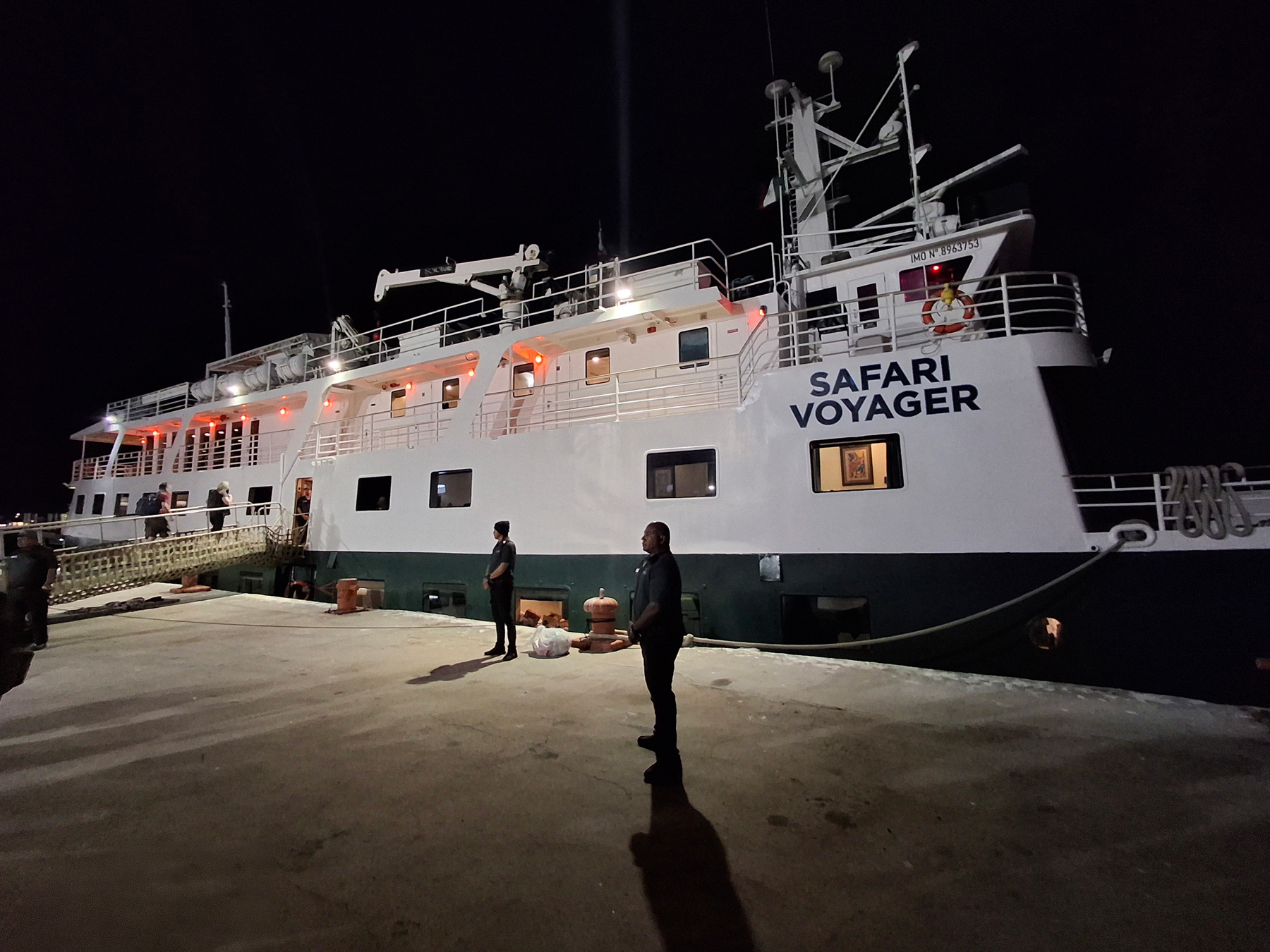 We arrive at the Safari Voyager after sunset. It’s about the same size as the Wilderness Explorer we sailed on in Alaska, and with the 30 passengers, she won’t be anywhere near full. We meet Captain Shep at the gangway, board, and are shown to our cabin and our home for the next week.