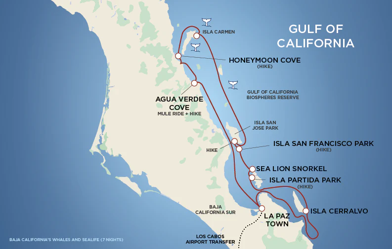 With the Pacific Northwest already turning to cold days and colder nights, the one requirement was, this time, we wanted to go somewhere warm and sunny. Uncruise had several itineraries that fit the bill; the Galapagos, Hawaii, and a couple different cruises in Baja California. One seemed to jump out more than the rest - a 7-day cruise around the Sea of Cortez, involving many isolated locations for daily activities, whale watching, and sea lions. We decided on dates the first week of February, even though it was likely still a little too early for any major whale sighting, to sail out of La Paz.